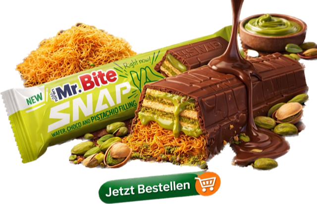 Toren Mr. Bite Snap Pistaziencreme Waffelriegel überzogen mit Vollmilchschokolade überzogen und beschichtet mit Pistaziencreme ist ein Genuss für zwischendurch. Kombiniert mit Vollmilchschokolade, Pistaziencreme und Waffel. Der super leckere, Snack ist für alle Schokoladen- und Waffelliebhaber ein Genuss. Klein – Fein – Knusprig ! Genießen Sie den Genuss daheim, unterwegs, bei der Arbeit oder in der Schule.